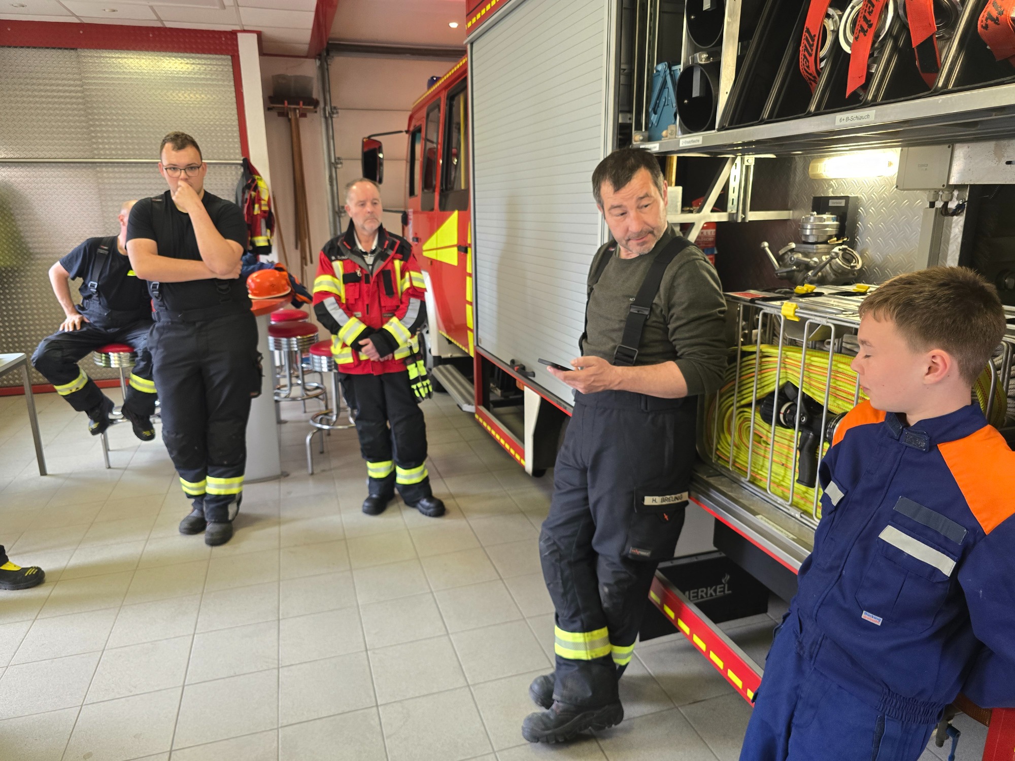 Wir haben unsere Geräte im LF8/6 geprüft und besprochen - so wurde aufgefrischt, wo was zu finden ist und die Handgriffe sitzen im Ernstfall besser und schneller.